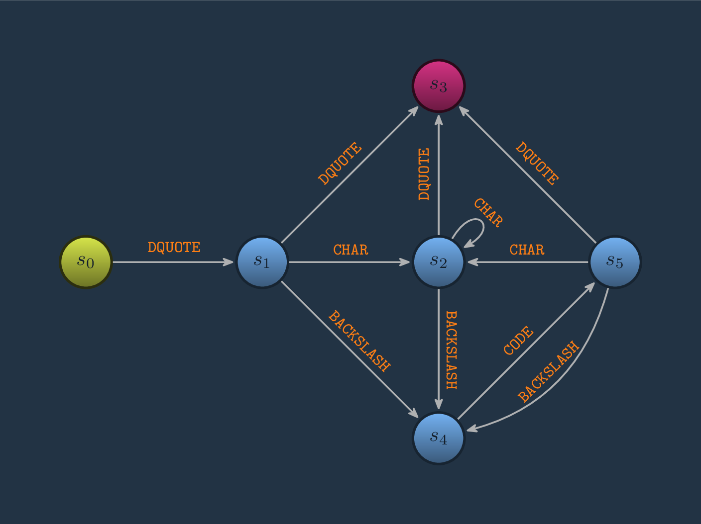 So, we know what to write and how to write it and determine if it is rightly wroten. For example: We know or possibilities once we have written a double quote: